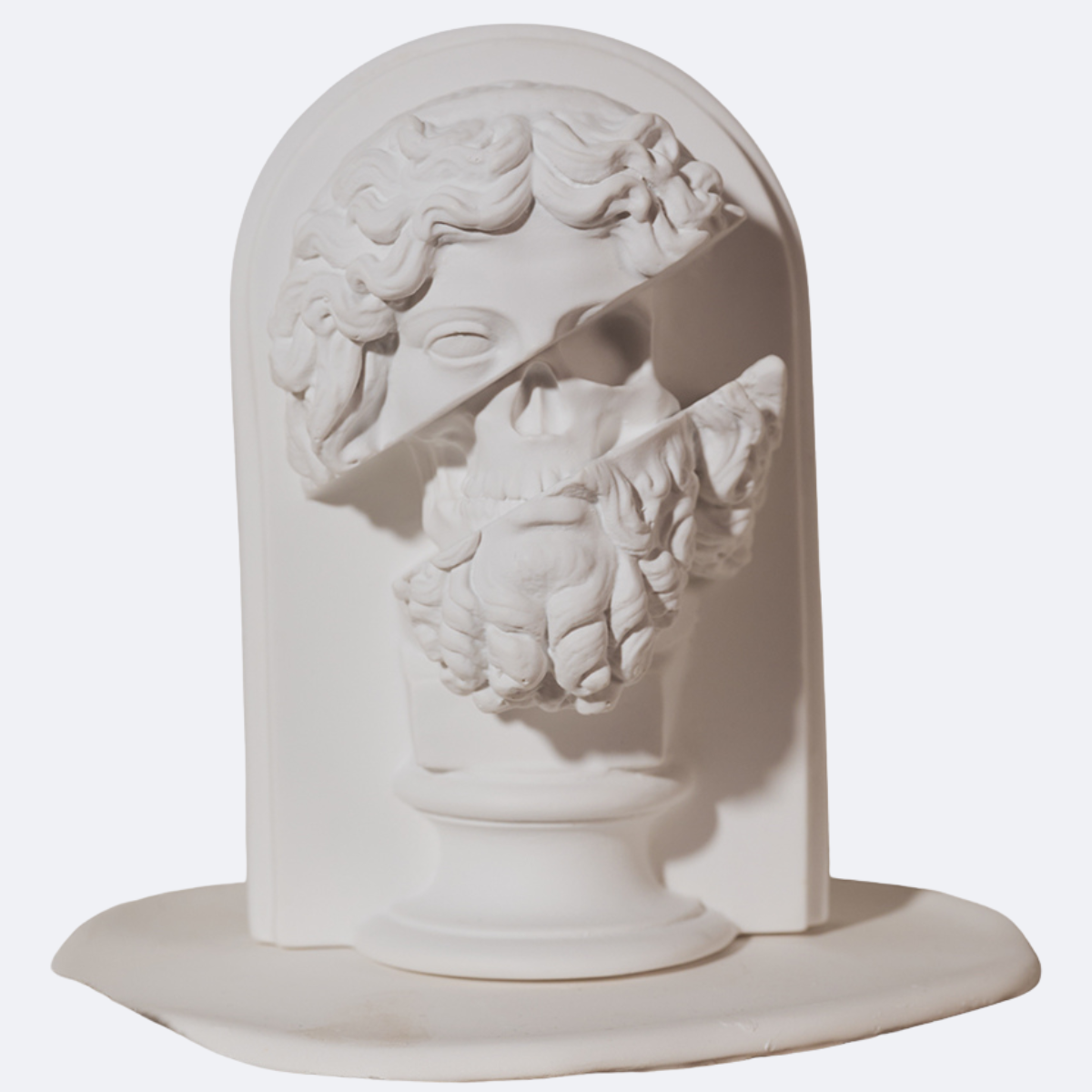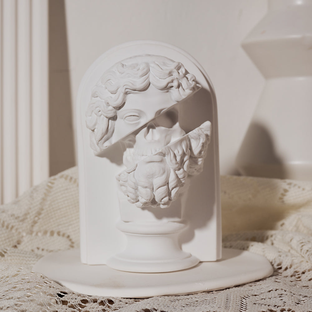 Divine Fragment is an awe-inspiring fusion of classical grandeur and modern minimalism. This sculpture, echoing the visage of an ancient deity, is split with artistic intent — capturing the essence of time, decay, and transcendence. The detailed curls of the beard and regal structure contrast beautifully against the stark white medium, making it both a statement of craftsmanship and a philosophical piece. Perfect for home offices, study shelves, or gallery walls, this sculpture invites viewers to reflect on the power of legacy, imperfection, and divine mystery. A must-have for lovers of Greek mythology, art, and interior refinement.