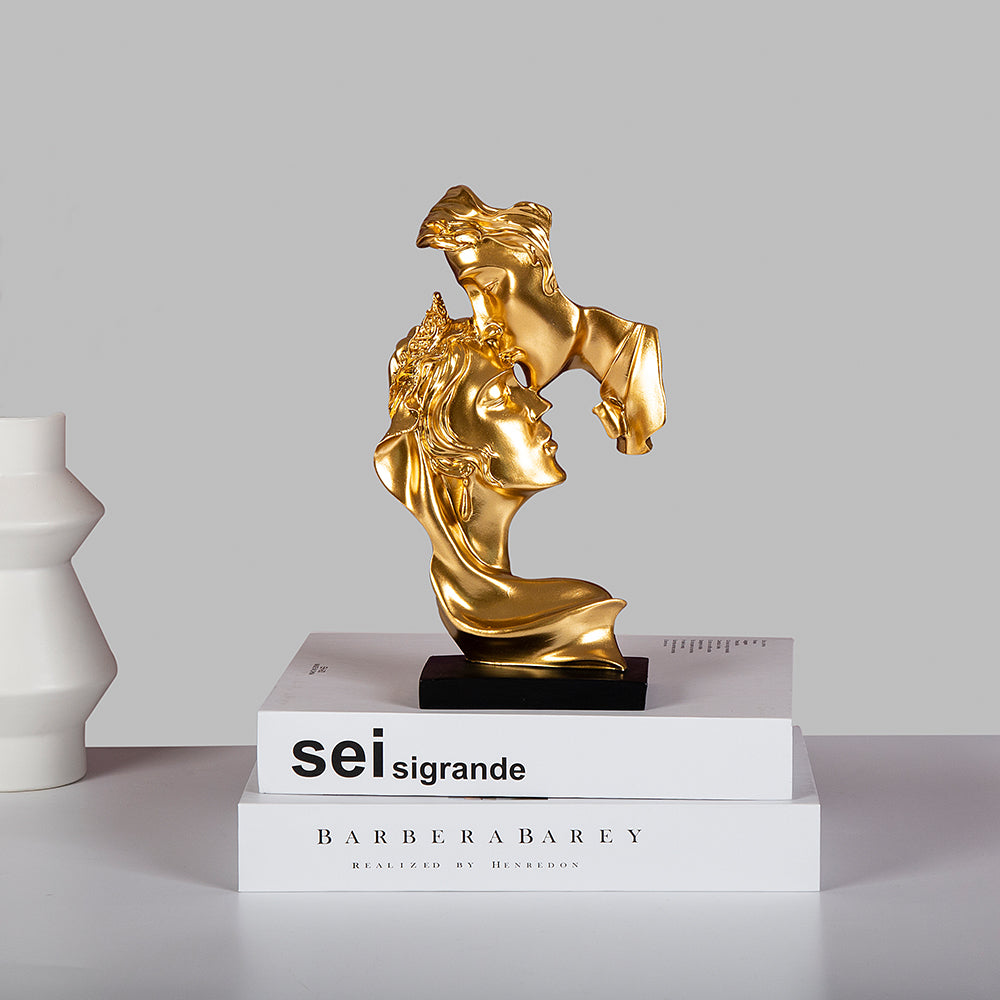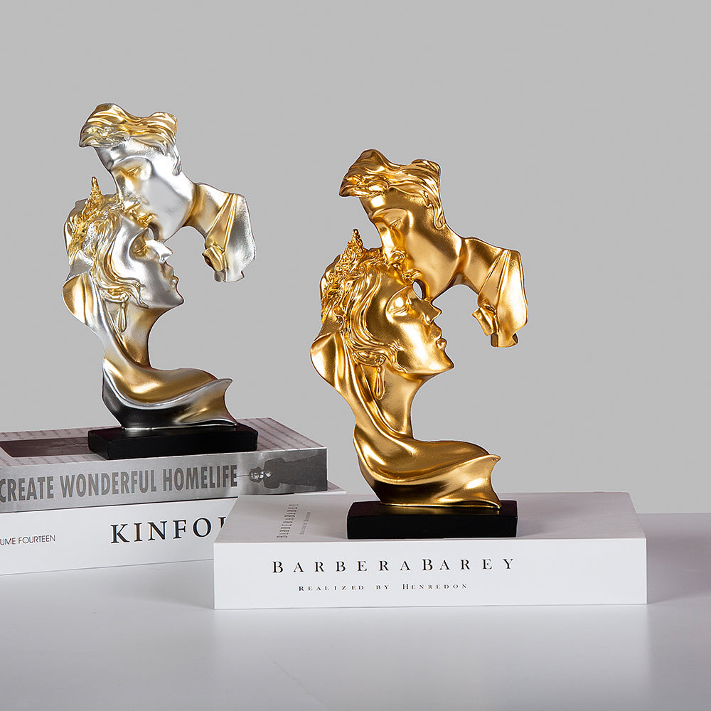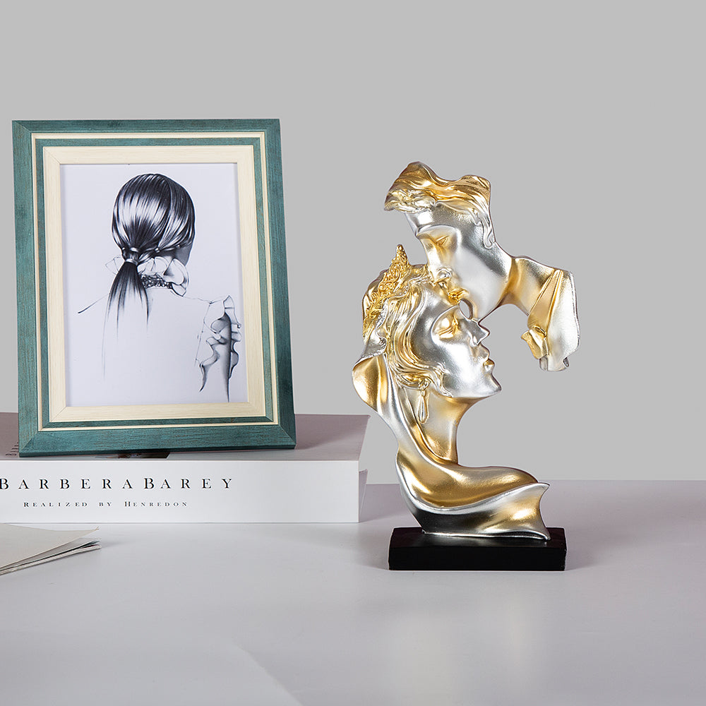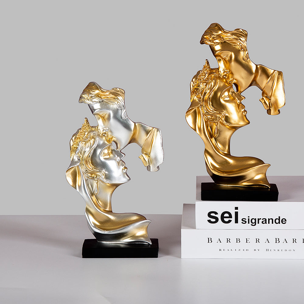 Celebrate timeless passion with Eternal Kiss — a stunning abstract sculpture that captures the fleeting yet powerful moment of a kiss frozen in eternity. With shimmering silver and gold finishes, this piece blends luxury and romance in a way that mesmerizes. Ideal for modern homes, romantic spaces, or as a statement gift, it evokes emotion, elegance, and a deep sense of connection. Let this captivating artwork speak volumes where words fall short — a perfect blend of art, love, and sophistication.
