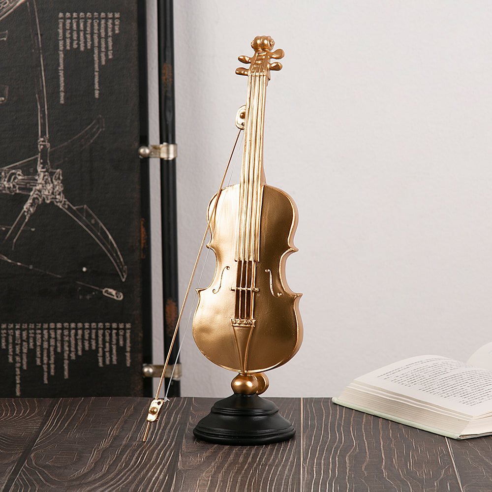 Celebrate the timeless elegance of music with Golden Melody — a stunning violin-inspired sculpture that strikes a perfect chord between sophistication and artistry. Cast in a radiant gold finish and gracefully paired with a delicately poised bow, this piece captures the spirit of classical performance in sculptural form. Perched on a sleek black pedestal, it brings charm and harmony to bookshelves, pianos, or entry consoles. Whether you're a musician, a music lover, or simply drawn to refined décor, Golden Melody turns any space into a stage of inspiration and style.