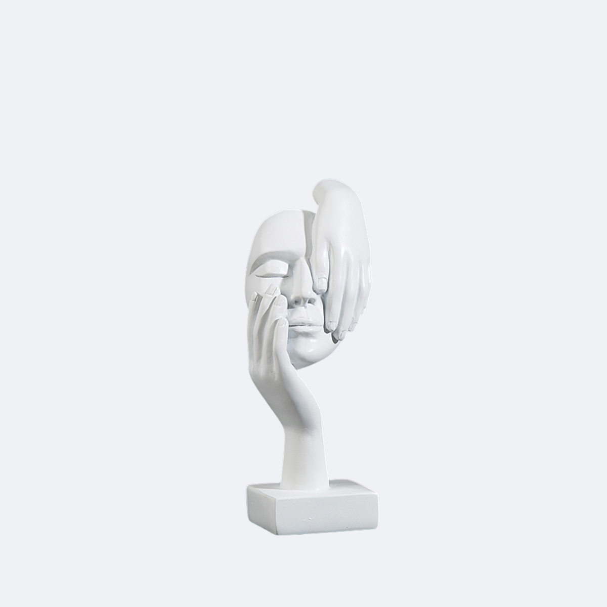 Speak without words with Hushed Mystery — a captivating sculpture that blends abstraction with emotion in a strikingly minimal form. Featuring a fragmented face gently covered by a sculpted hand, this 15.5cm tall artwork evokes themes of silence, secrecy, and contemplation. The smooth white finish and clean geometric lines give it a gallery-like presence, perfect for modern interiors, creative studios, or minimalist décor schemes. Hushed Mystery is more than an art piece — it’s an invitation to pause, reflect, and appreciate the stories that live behind quiet eyes and sealed lips.