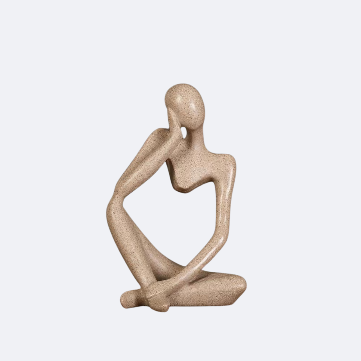 Elevate your space with Pensive Grace — a minimalist sculpture that captures the raw beauty of human contemplation. Crafted in a smooth, natural-toned finish, this abstract figure sits cross-legged, head gently resting on hand, radiating a quiet, introspective charm. Its fluid, elongated form blends seamlessly with modern, Scandinavian, or bohemian decor. Perfect for bookshelves, desks, or meditation corners, Pensive Grace is more than decor — it’s a reminder to pause, reflect, and embrace the elegance in stillness. A subtle yet powerful statement for art lovers and thinkers alike.