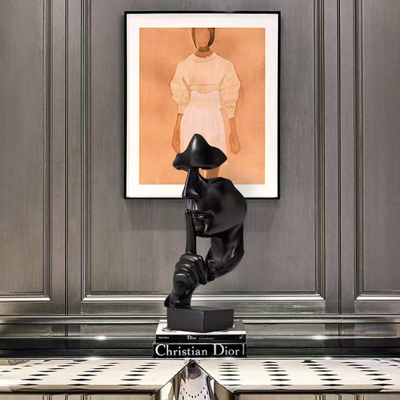 Mysterious, modern, and utterly compelling, Shadow Silence is a bold expression of quiet power. Cast in matte black resin with sculptural finesse, this 26.5cm tall abstract bust captures the timeless gesture of a finger over lips, urging contemplation over chaos. Its fragmented face and surreal design evoke intrigue and artistic depth, making it the perfect statement piece for minimalist interiors, creative studios, or modern offices. Whether placed on a shelf, desk, or mantle, Shadow Silence speaks volumes without ever saying a word. Ideal for those who believe in the elegance of restraint.