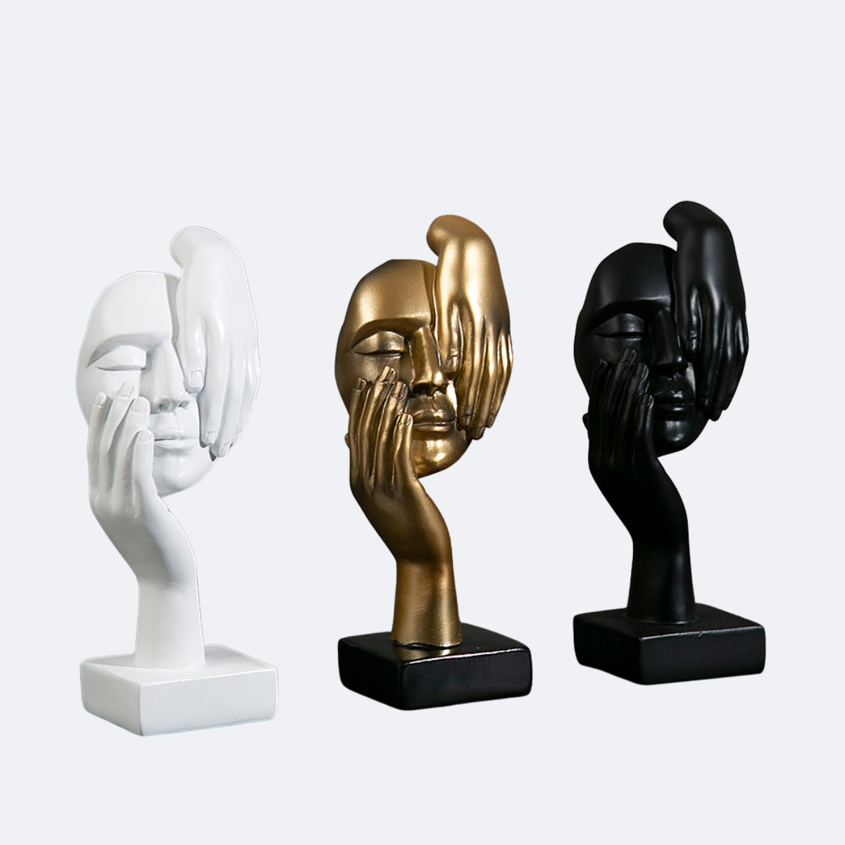 Evoke emotion and depth with Silent Reflection — a striking abstract sculpture that speaks volumes without saying a word. This minimalist piece features a serene face delicately cradled between two sculpted hands, inviting viewers to pause, breathe, and contemplate. Crafted in a matte white finish, its clean lines and graceful curves offer a modern, museum-worthy presence. Standing 17cm tall, it’s perfect for desktops, side tables, or artistic corners that crave thoughtful detail. Whether as a statement of calm or a symbol of introspection, Silent Reflection brings a profound stillness and contemporary elegance to any space.